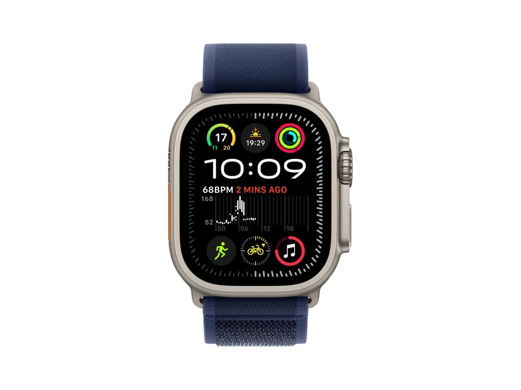 Apple Watch Ultra 2 49mm Přírodní titan s modrým trailovým tahem M/L