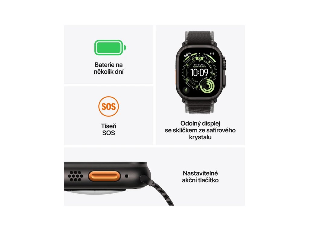 Apple Watch Ultra 3 mají spoustu inovativních bezpečnostních funkcí, které tě jistí. Dokážou přivolat pomoc, když ji nejvíc potřebuješ a nemáš zrovna v dosahu iPhone.